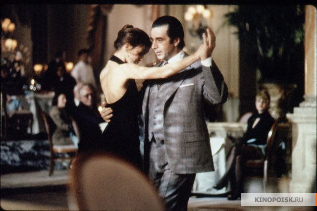 шикарном ресторане в Нью-Йорке. Фрэнк ловит в воздухе легкий аромат мыла Ogilvie Sisters Soap, исходящий от девушки за соседним столиком. "Мыло подарила мне бабушка". Светло-коричневые волосы, 22 года. "Можно мы подождем с Вами Вашего друга, чтобы к Вам не приставали бабники?". И они танцуют это танго. Сейчас, в танце, в этом запахе заключается вся жизнь. Мужчины любят глазами. Глаз Фрэнк лишился. Теперь запах, пьянящий запах, аромат жизни составляет все его богатство. Он живет моментом танго, которое наиболее тонко дает почувствовать вкус женщины, как олицетворения прекрасного видимого мира. Только женщины, а уж потом, далеко на втором месте - феррари.